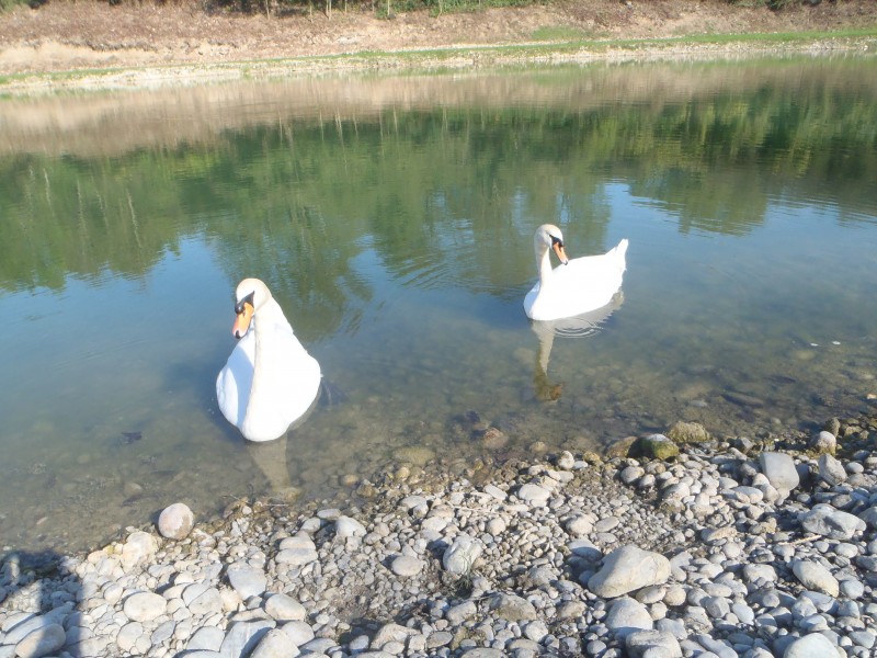 Les cygnes le soleil, la bonne humeur,un bon repas,
