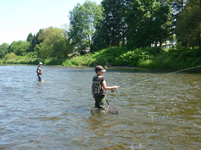 Mikaël et Valentin du Club Mouche des Trois rivières en action de pêche