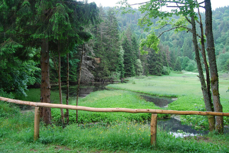 L’Etang du Devin se niche dans un cirque glaciaire exposé aux vents du nord. A l’instar des Lacs Blanc et Noir il forme un entonnoir naturel d’une superficie de 2 hectares, n’ayant d’autre ouverture qu’une déchirure dans la montagne d’une largeur de 30 mètres. Cet étang correspond en fait à une tourbière en fin d’évolution. L’étang est signé comme un marais au XVIIIème siècle. Mais les habitants de Lapoutroie se souvenaient alors encore qu’autrefois c’était un lac où leurs ancêtres s’amusaient à voguer sur l’eau à l’aide d’un radeau fait de deux troncs d’arbres coupés et attachés ensemble. Les hommes ont toujours été fascinés par ce site et ses potentialités agricoles et industrielles. Toutes les tentatives d’exploitation se sont soldées par des échecs. Ainsi l’étang du Devin est devenu un lieu mystérieux et sauvage pour le plus grand bonheur des randonneurs et des botanistes.